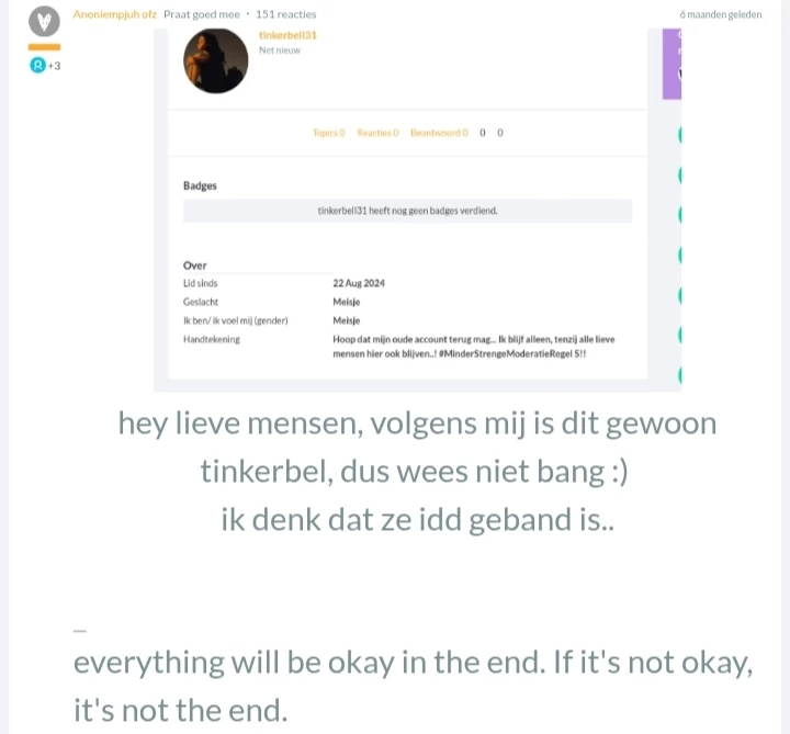 Fijn dat je er nu wel weer bent😊❤️ Er zijn gelukkig ook wel wat nieuwe lieve mensen gekomen zoals ​@Boterbloempjee ​@Tjempie ​@Blub 🙂 Maar ja snap wel dat het alsnog anders voelt dan eerst😔❤️