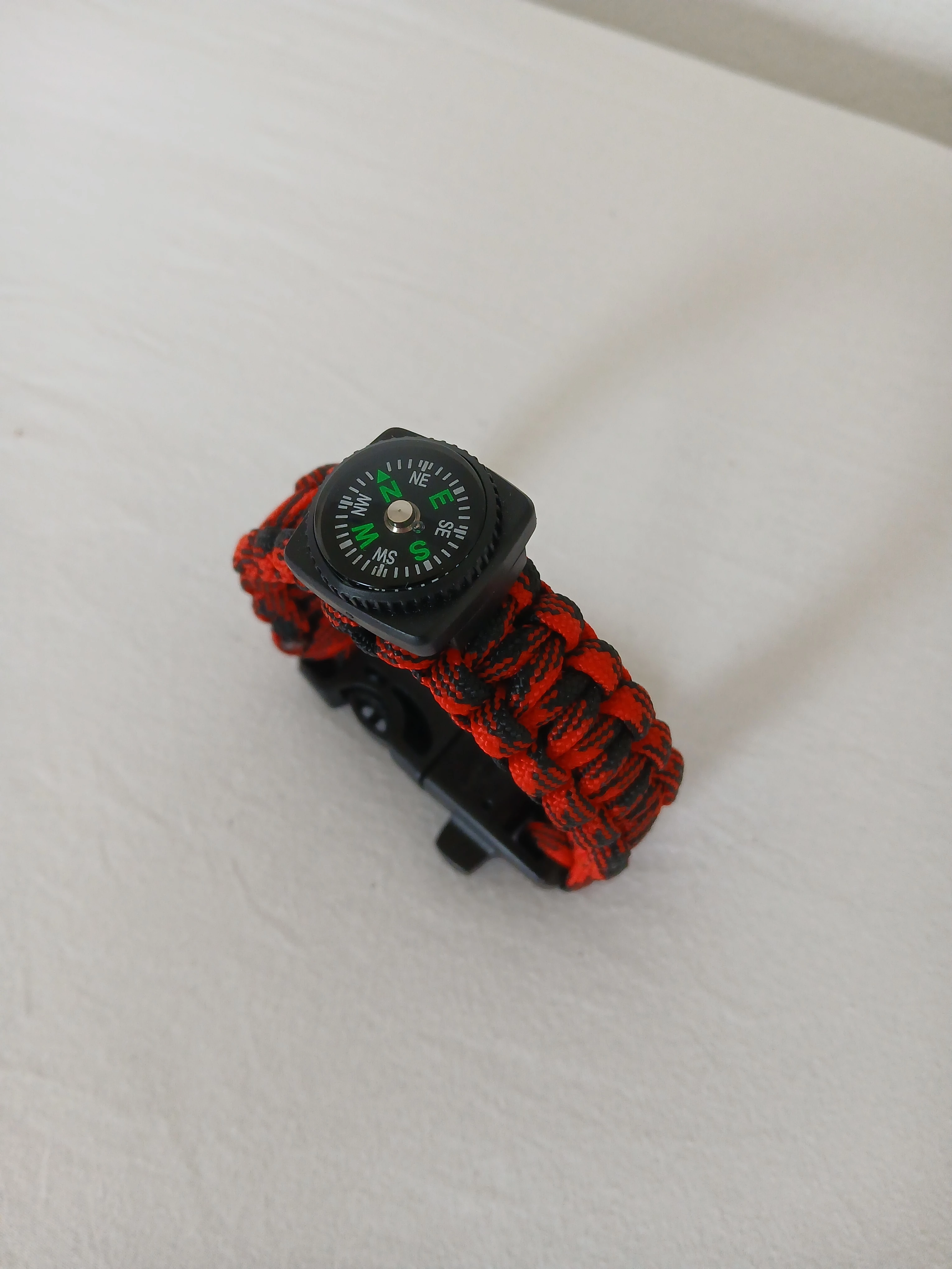Dit is de mijne: het is ook een noodfluitje, vuurstarter en touw van 2,10 meter!