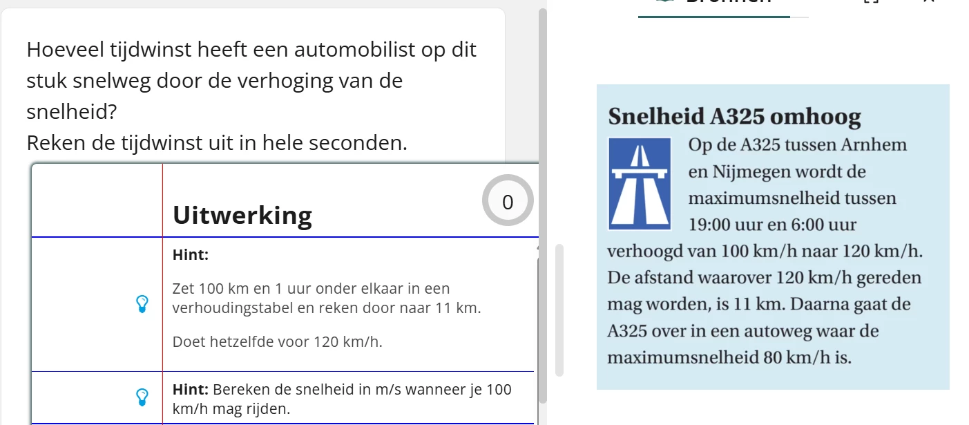 Om het tijdswinst uit te rekenen, doen we de tijd die nodig was voor 11 kilometer bij 120 km/h min de tijd dien nodig was voor 100 km/h, want dan rekenen we het verschil in tijd uit.